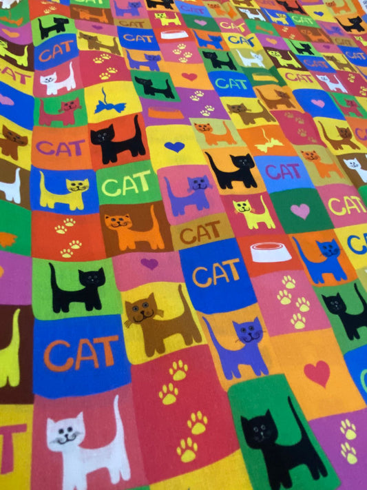 Tricoline 100% Algodón - DG002 - Digital Gatos Cuadros Coloridos (50 x 150)