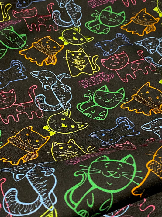 Tricoline 100% Algodón - DG003 -Digital Gatos Fondo Negro (50 x 150)