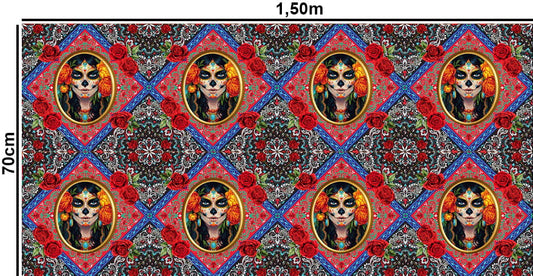 Tricoline 100% Algodón - DG058 Calavera Flores (50 x 150)