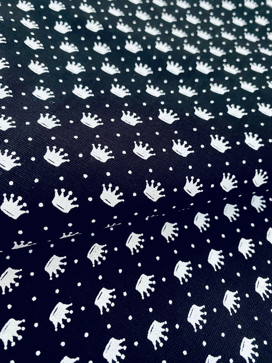 Tricoline 100% Algodón - TT018 Tinto Coronas Negro (50 x 150)