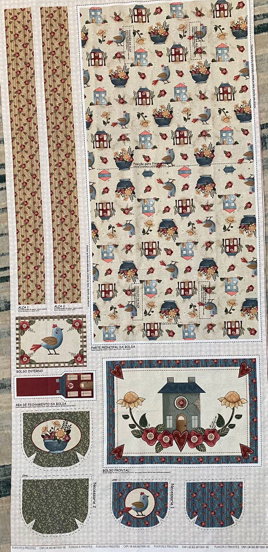 Tricoline 100% Algodón - PT015 Patrón Necessaire Villa de Amor (49 x 150)