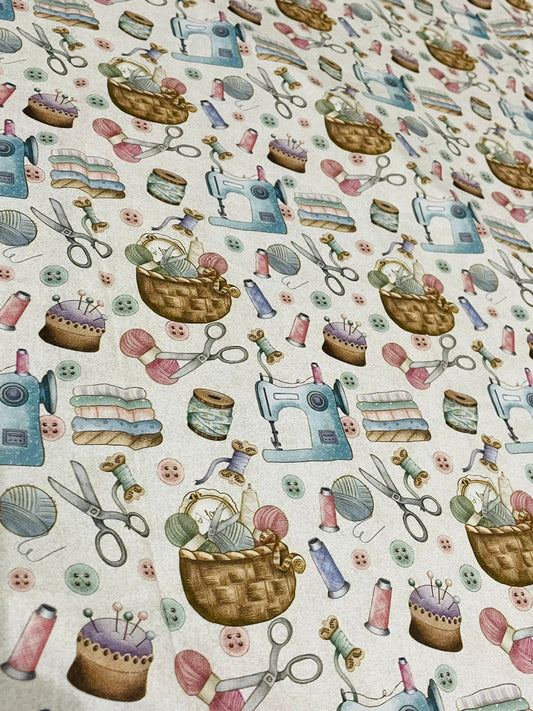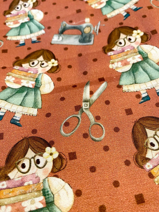 Tricoline 100% Algodón - EX007 Exclusiva Costurera Costurando Fuxicos (50 x 150)