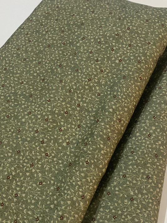 Tricoline 100% Algodón - EX051 Exclusiva cuadrille florecitas Verde Oliva Fuxicos (50 x 150)