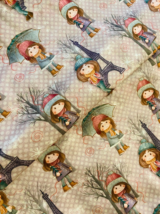 Tricoline 100% Algodón - EX040 Exclusiva Niña Invierno Paris (50 x 150)