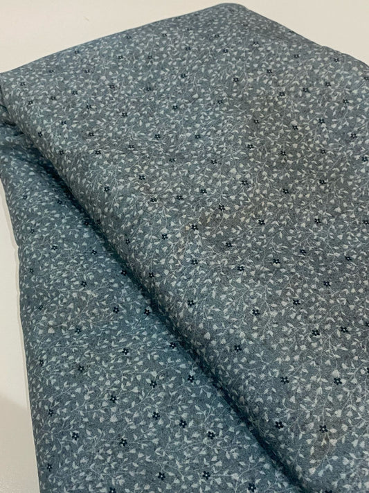Tricoline 100% Algodón - EX031 Exclusiva Ramitos Azul Marino Fuxicos (50 x 150)