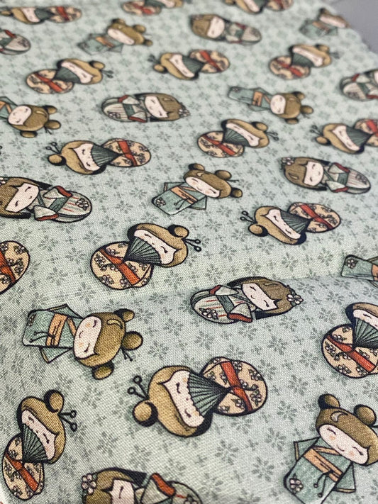 Tricoline 100% Algodón - EX018 Exclusiva Kokeshi Fuxicos (50 x 150)