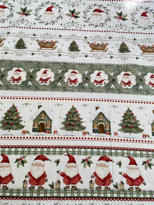 Tricoline 100% Algodón - CN016 Cenefas Navidad Santa Claus Vertical (50 x 150)