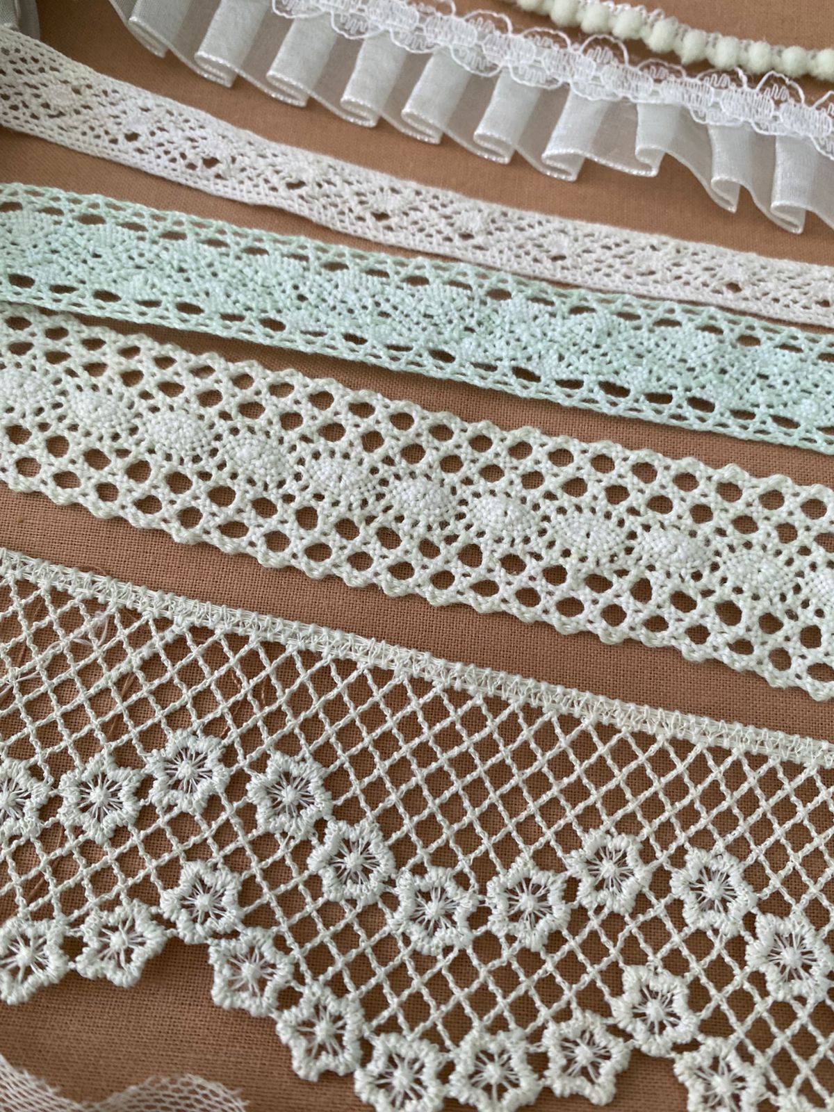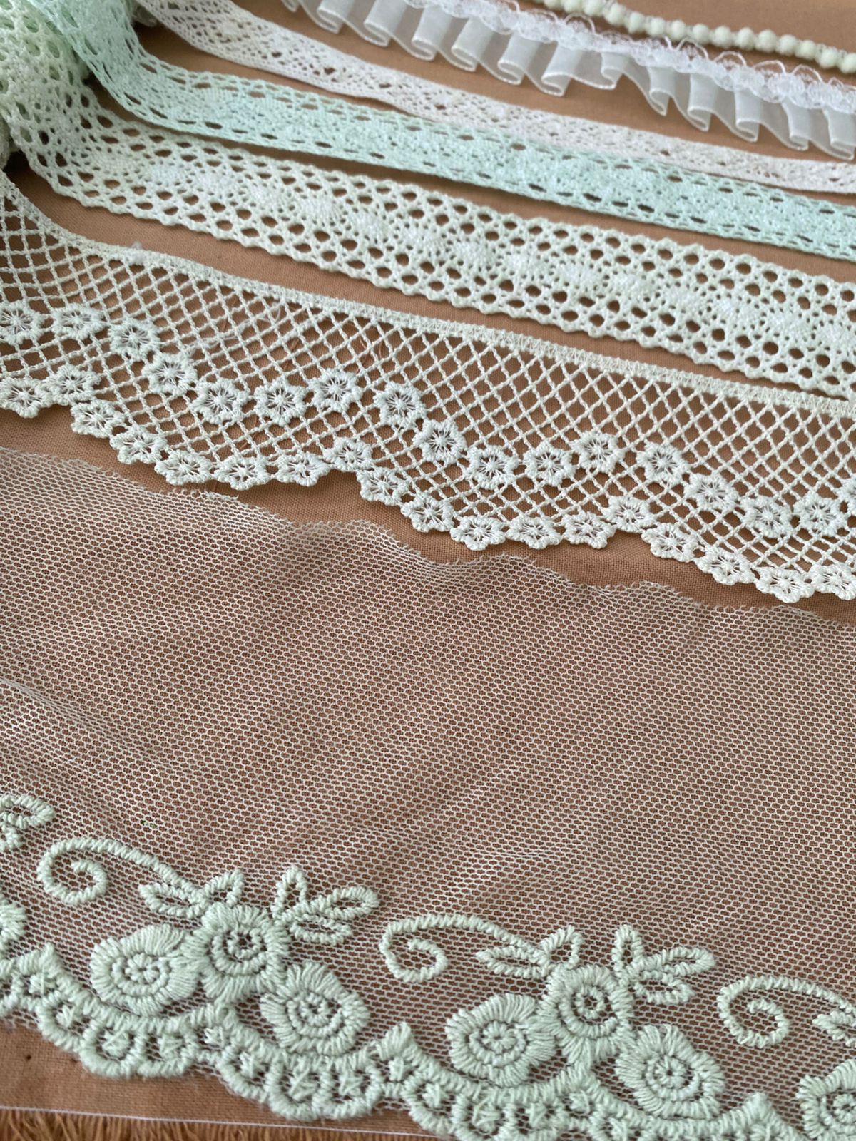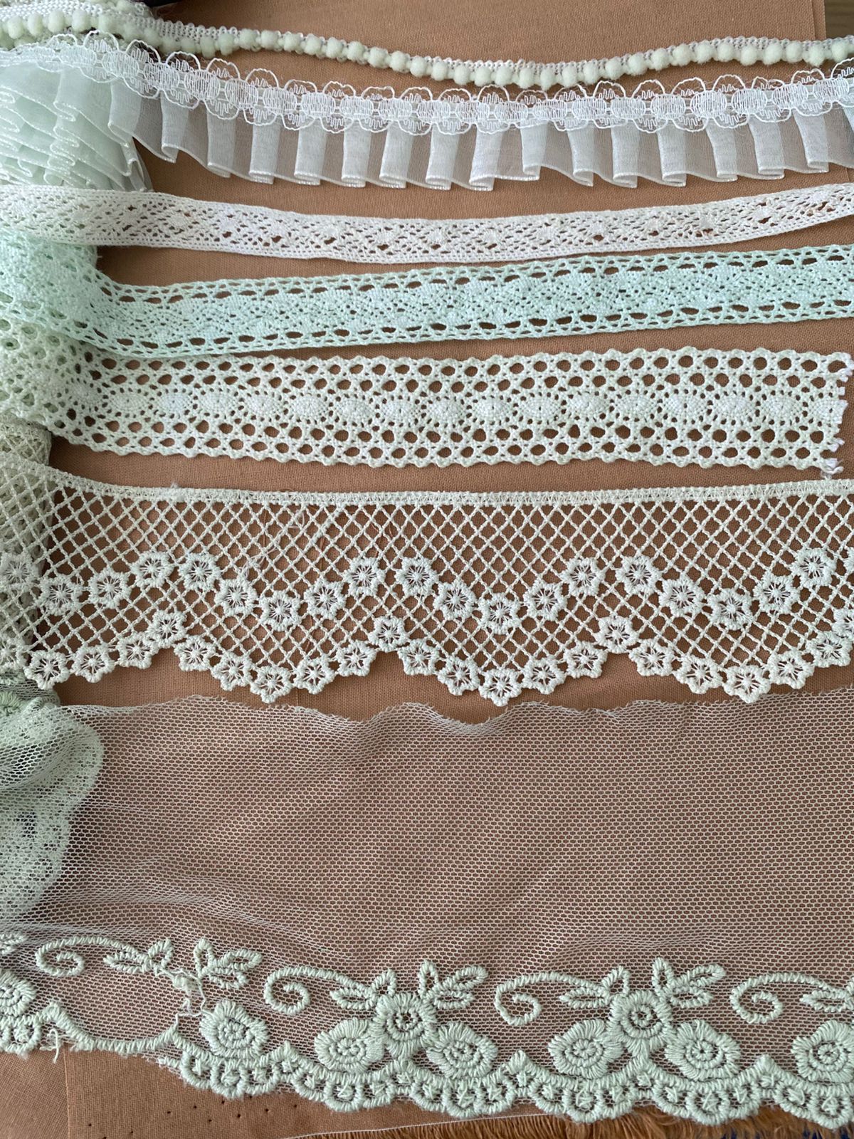 Kit 7 Encajes Variados CP006 - Color Verde Claro (14 Metros total)