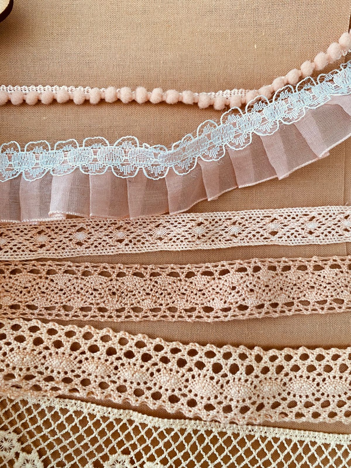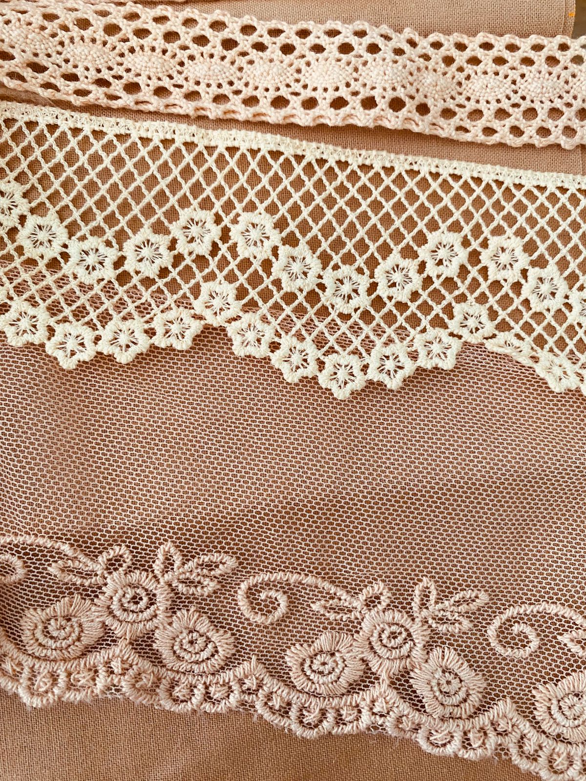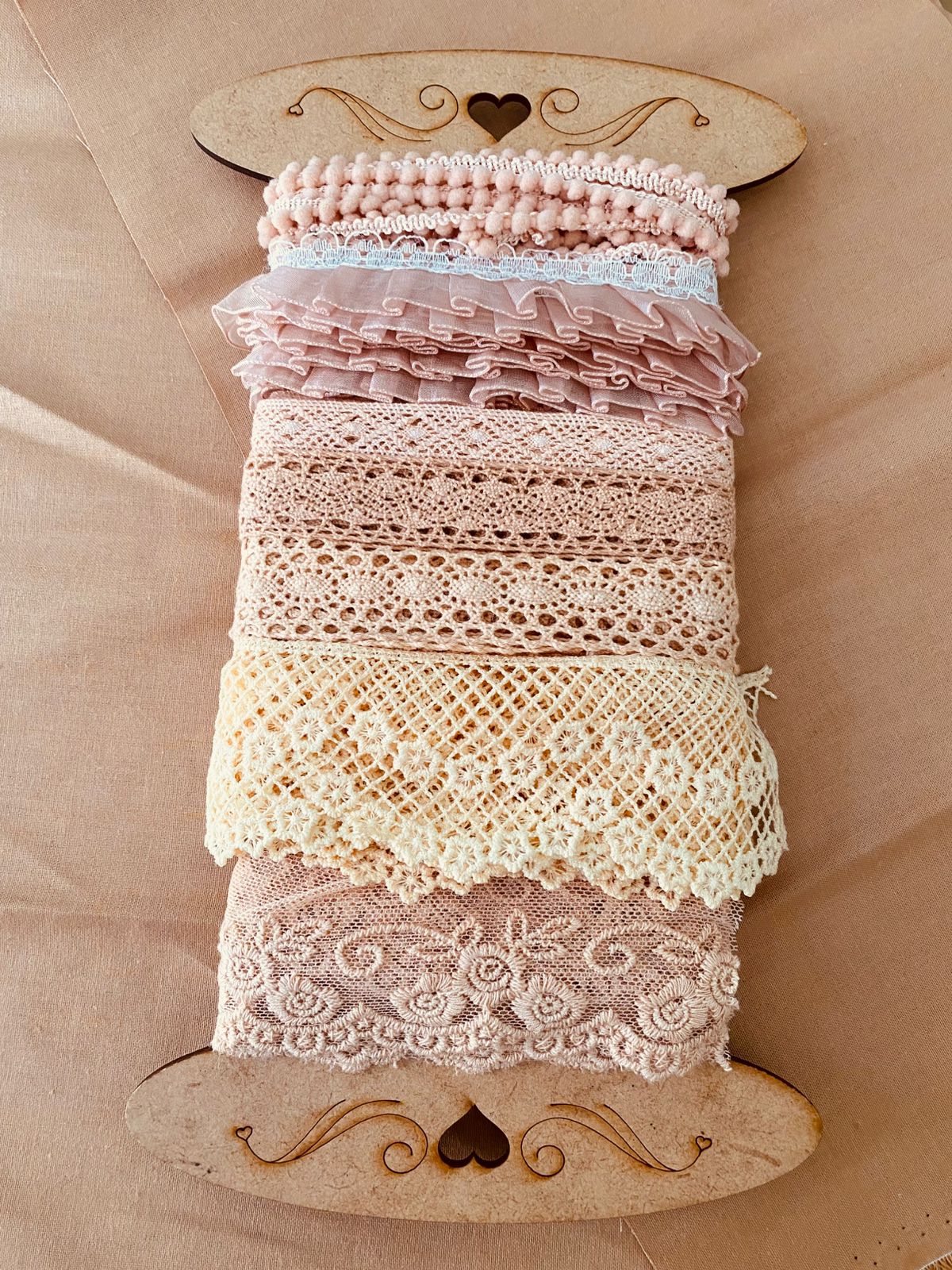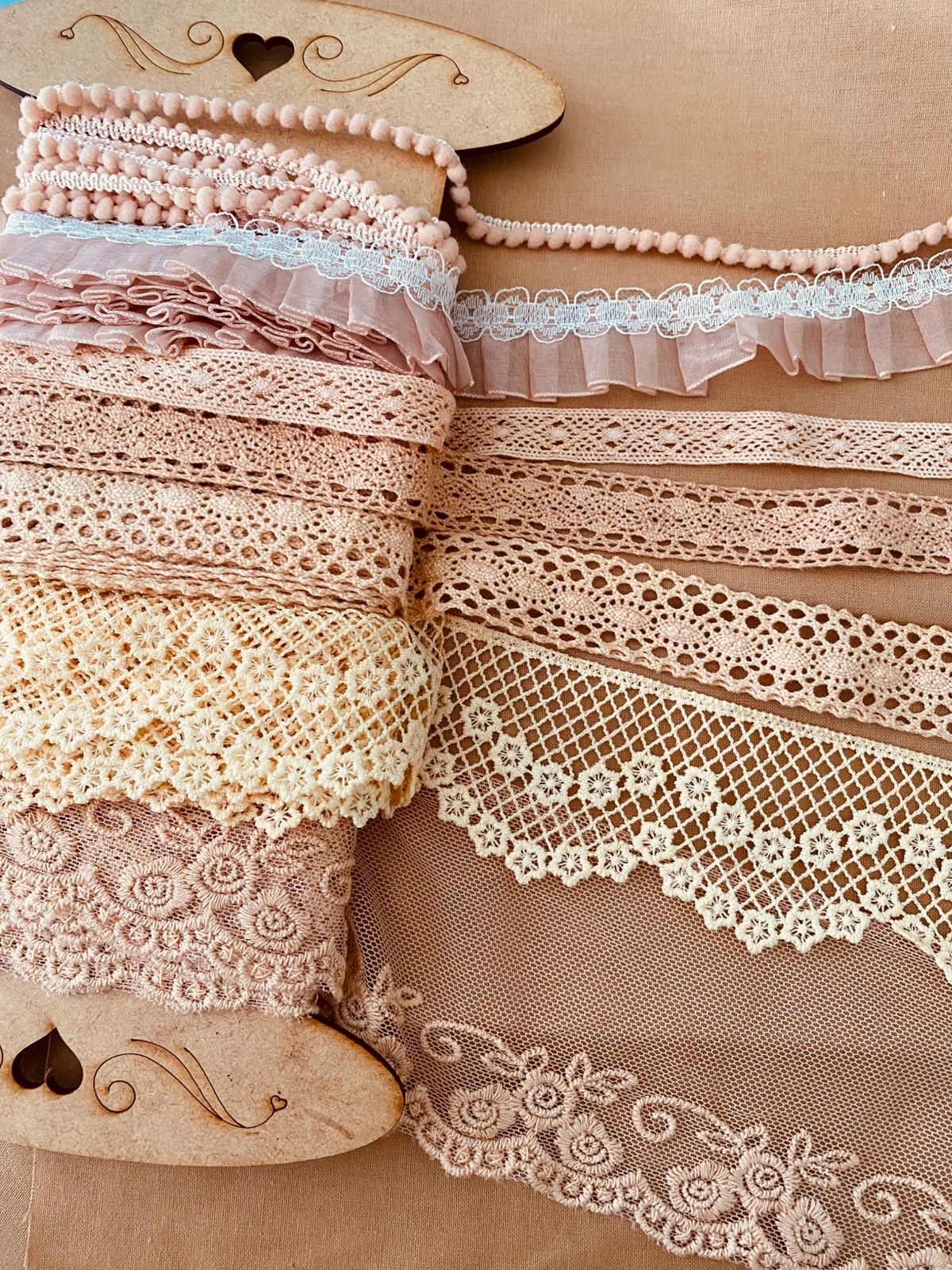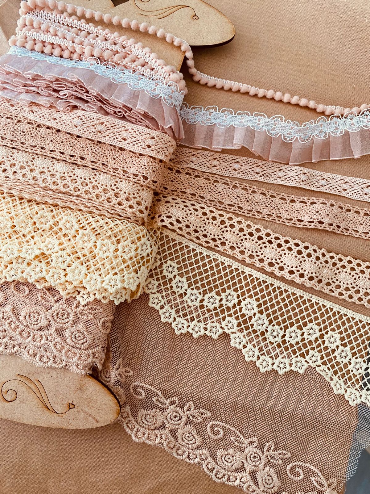 Kit 7 Encajes Variados CP009- Color Rosa Palo (14 Metros total)