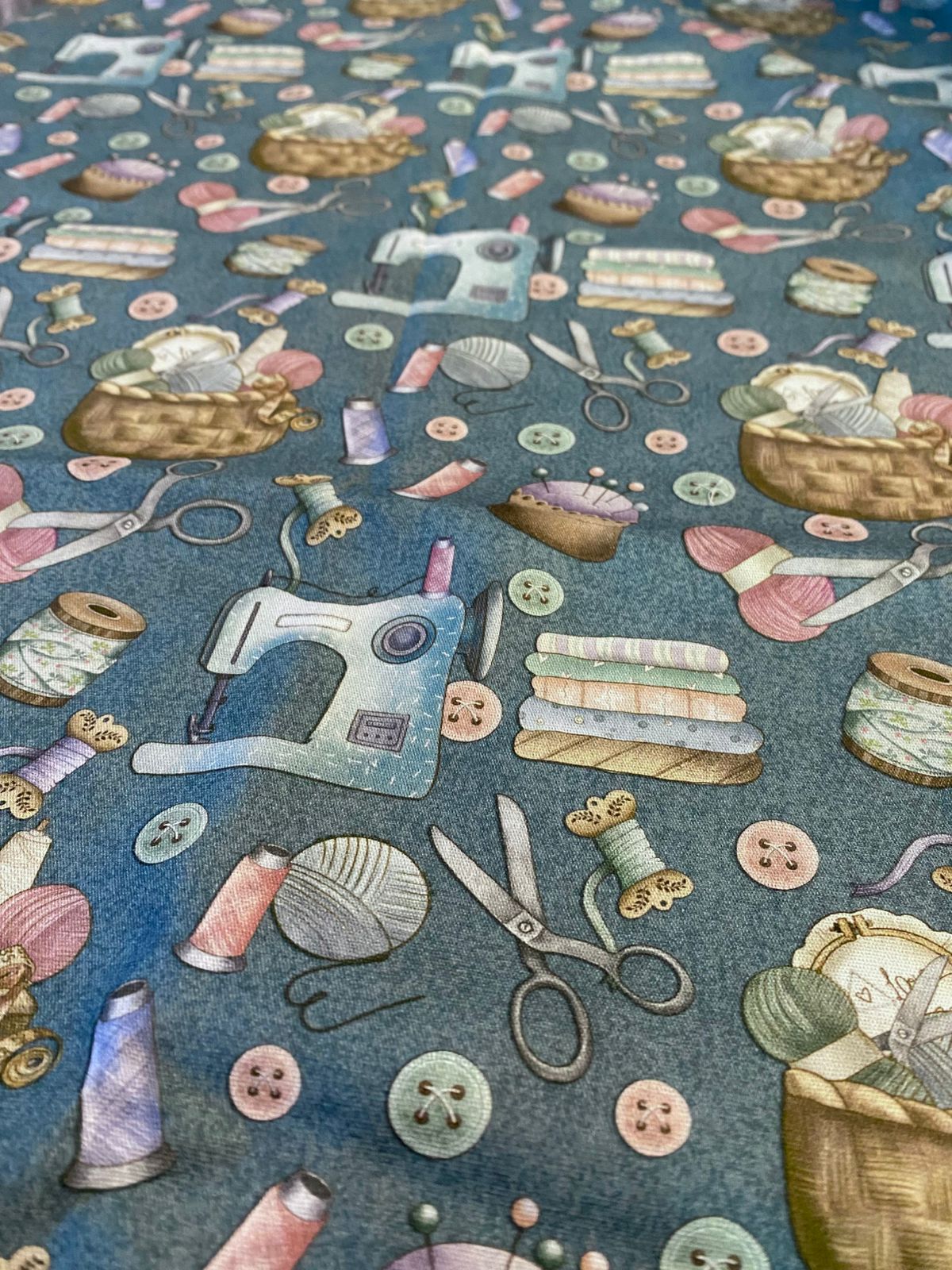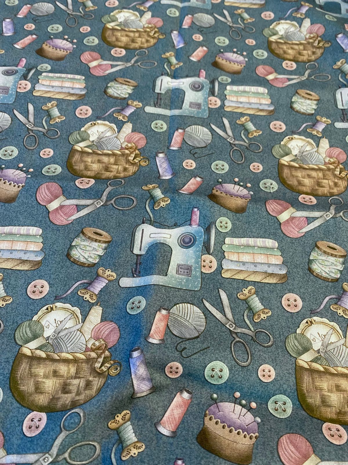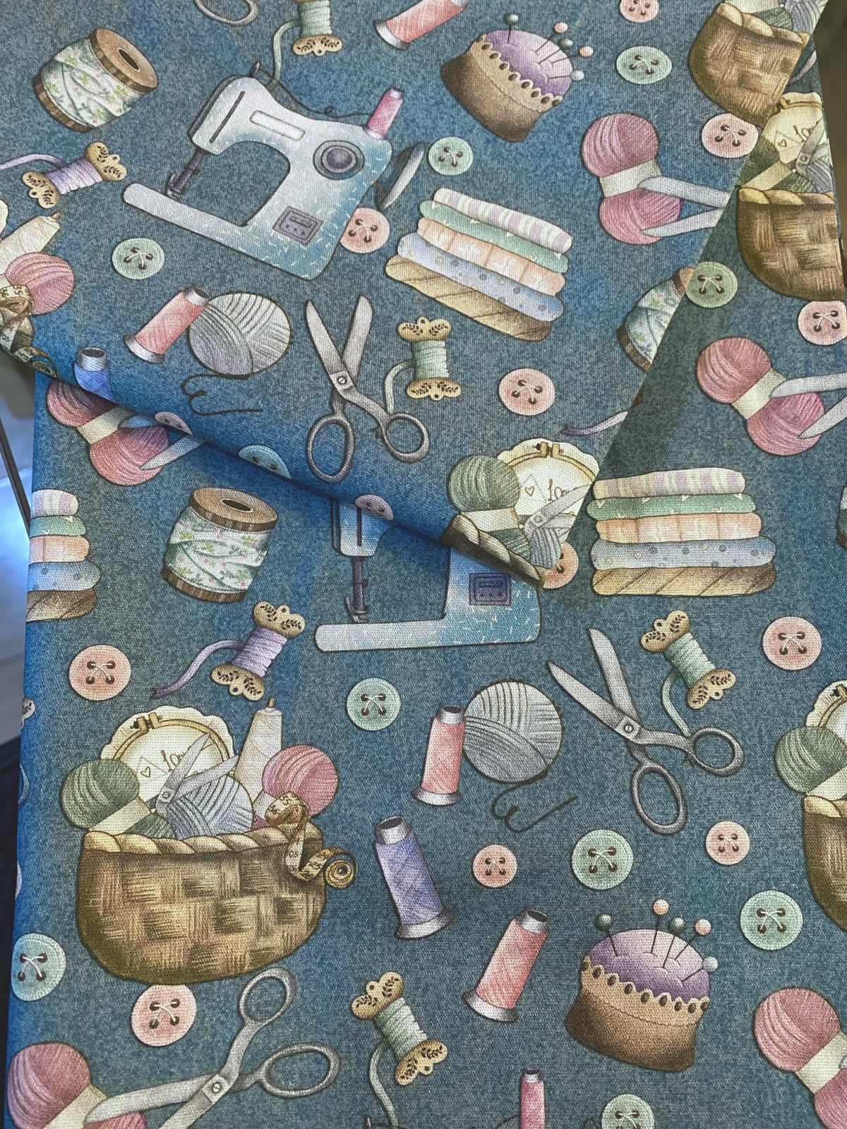 Tricoline 100% Algodón - EX005 Exclusiva Costurita Azul Fuxicos (50 x 150)