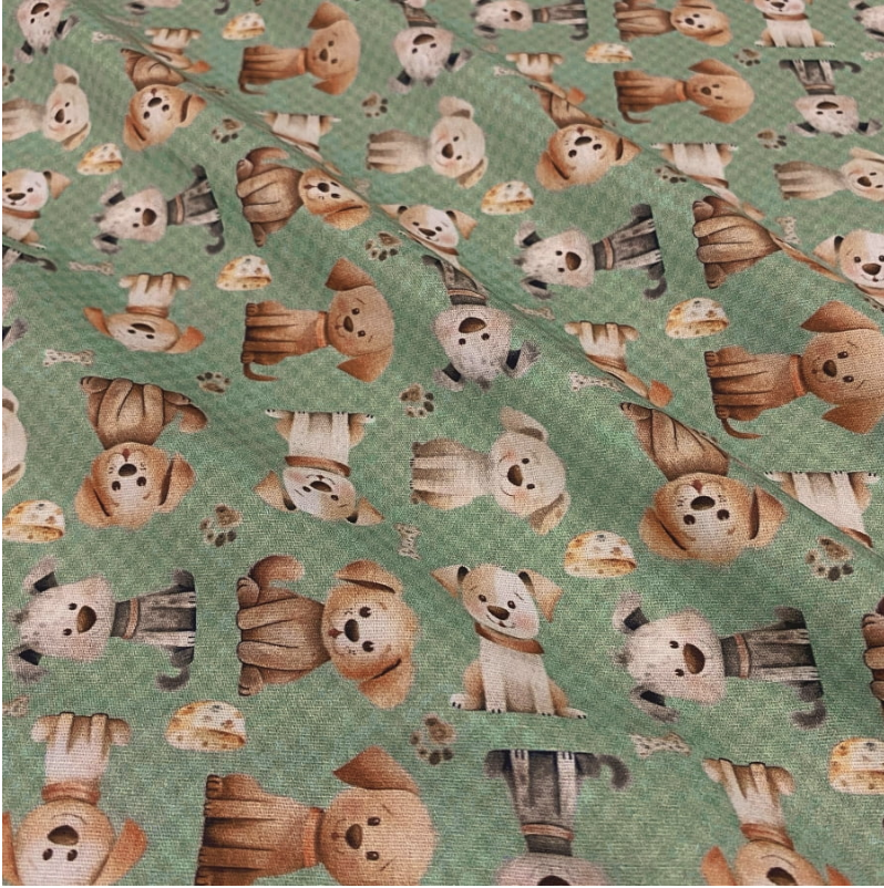 Tricoline 100% Algodón - EX047 Perros fondo Verde (50 x 150)