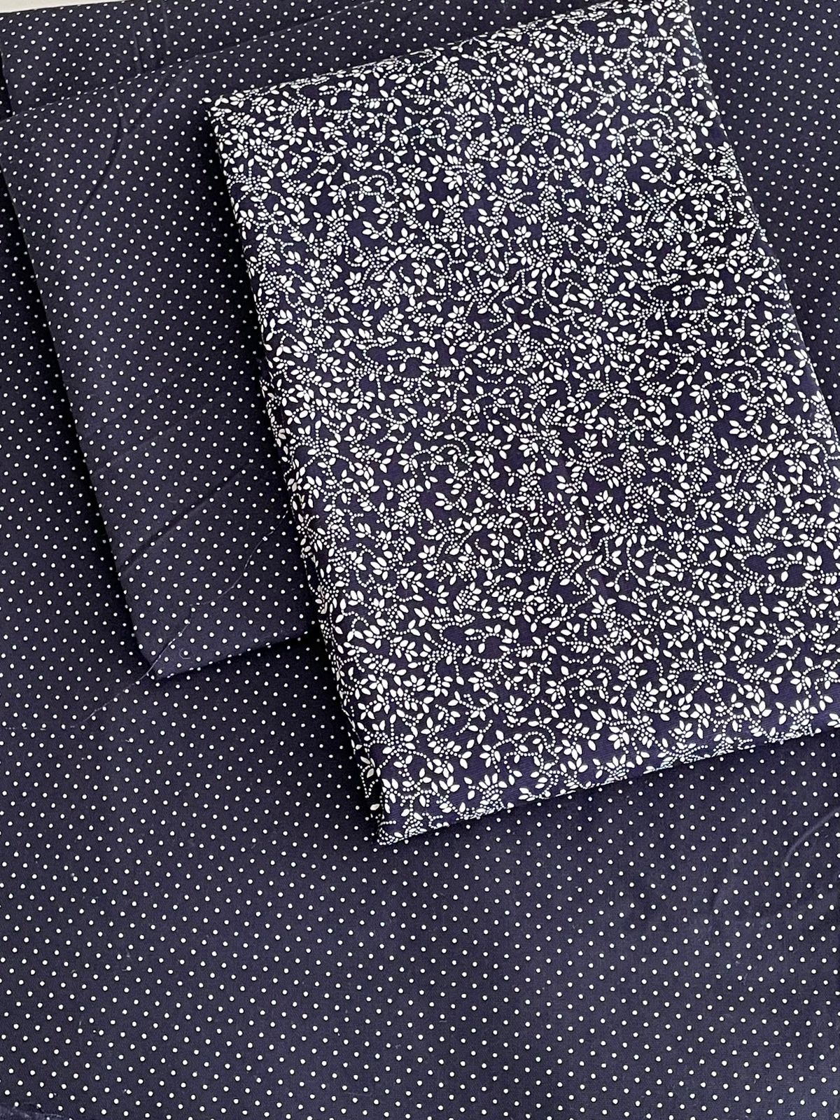 Tricoline 100% Algodón - TT110 Tinto puntitos azul marino (50 x 150)